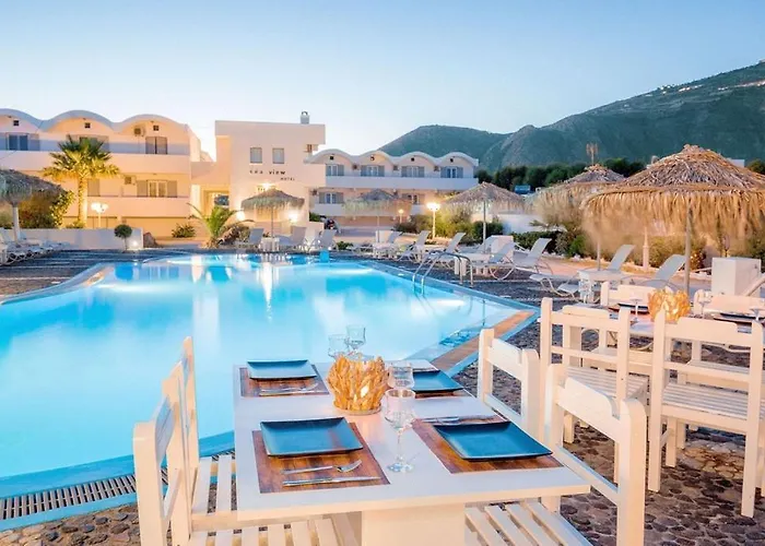 Het Sea View Beach Hotel Perivolos met 4 sterren met chaise-longues en de recreatieve voorzieningen ligt in Perissa, binnen 25 minuten wandelafstand van het Strand van Perissa. Dit hotel stelt auto's te huur. Er is wifi in openbare gebieden voor comfort.